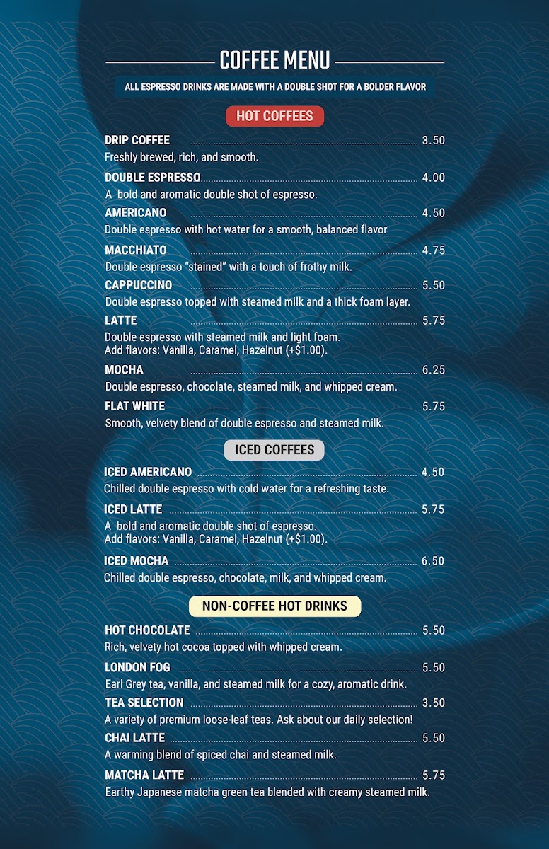 Ketel One Vodka, Irish cream, fresh espresso, coffee liqueur